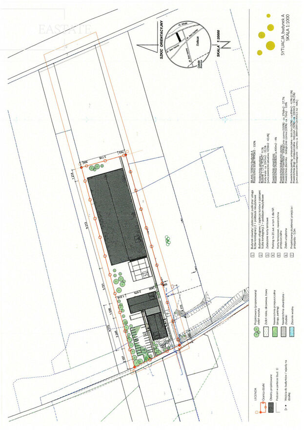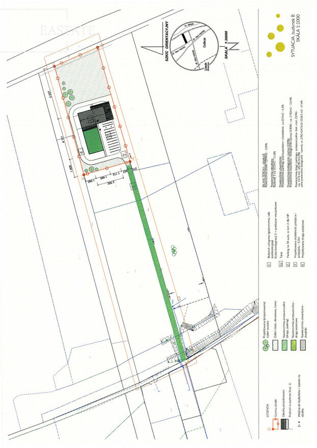 Szerokość budynku administracyjno-usługowego: do 30 m,