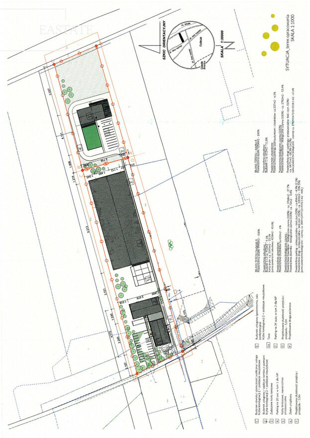 Wskaźnik powierzchni biologicznie czynnej: nie mniej niż 30% powierzchni terenu,
